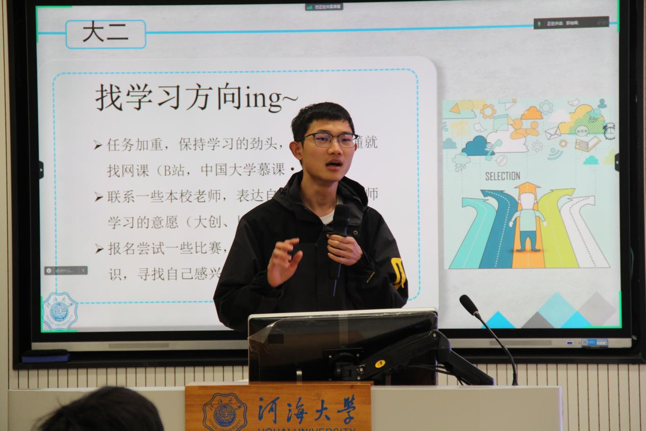 自动化专业的王华程同学成功保研至厦门大学。他从专业学习,心态调整等方面进行分享了自己独到的见解,提出“沉着冷静”“不卑不亢”“明确目标”“拒绝内耗”“相信自己”的心态调整方法,发出了“勇敢的人先享受世界”的肺腑之言,鼓励同学们能够在学业之余找到自己真正喜欢的事情。