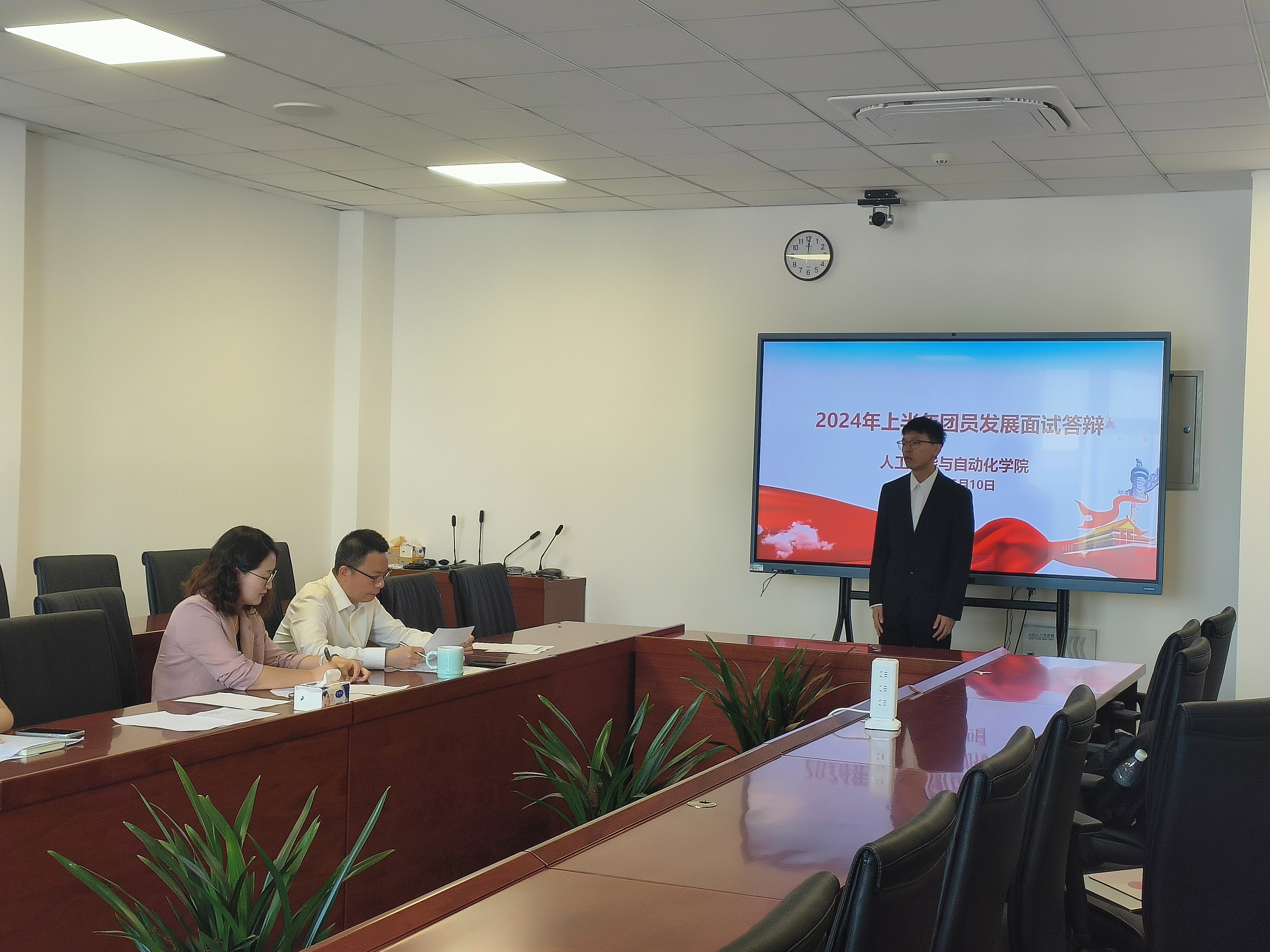 为深入学习贯彻习近平新时代中国特色社会主义思想和党的二十大精神、团的十九大精神,进一步引导广大青年肩负起时代赋予的重任,加强团组织队伍建设,选拔一批德才兼备、勤奋高效、团结向上的新团员队伍,充实我校共青团员的后备力量,加强入团发展对象对团组织的向心力,提高入团发展对象的个人素质和综合素养,我院严格按照《发展团员和团员教育管理工作实施办法》发展团员工作程序和校团委规定要严格遵从发展团员工作的“十步骤、三公示、六必须”流程规范,于2024年5月10日在常州校区22号楼404会议室开展“2024年上半年新发展团员面试”。本次面试由学院党委副书记李晓东和全体辅导员老师担任本期新发展团员面试的面试官。面试共分为自我介绍与提问答辩两个环节。