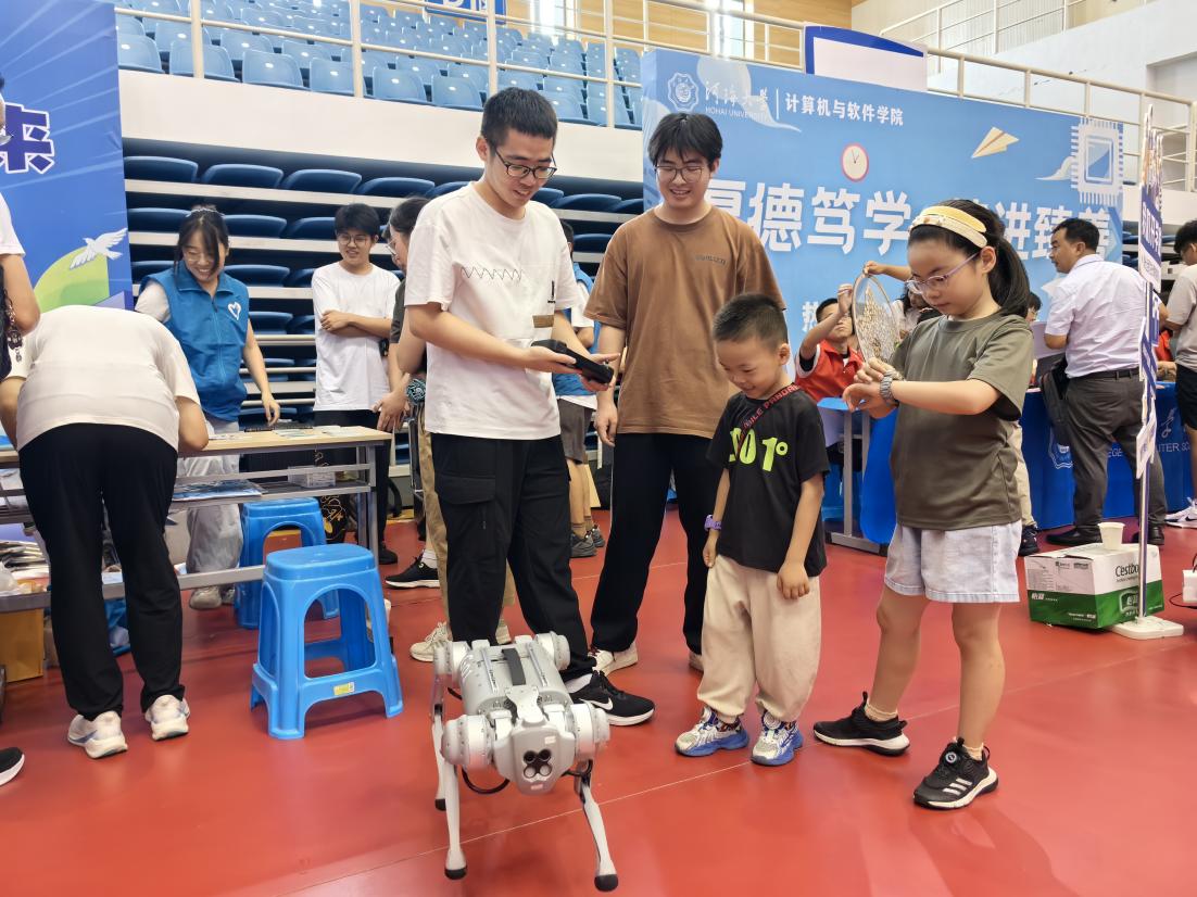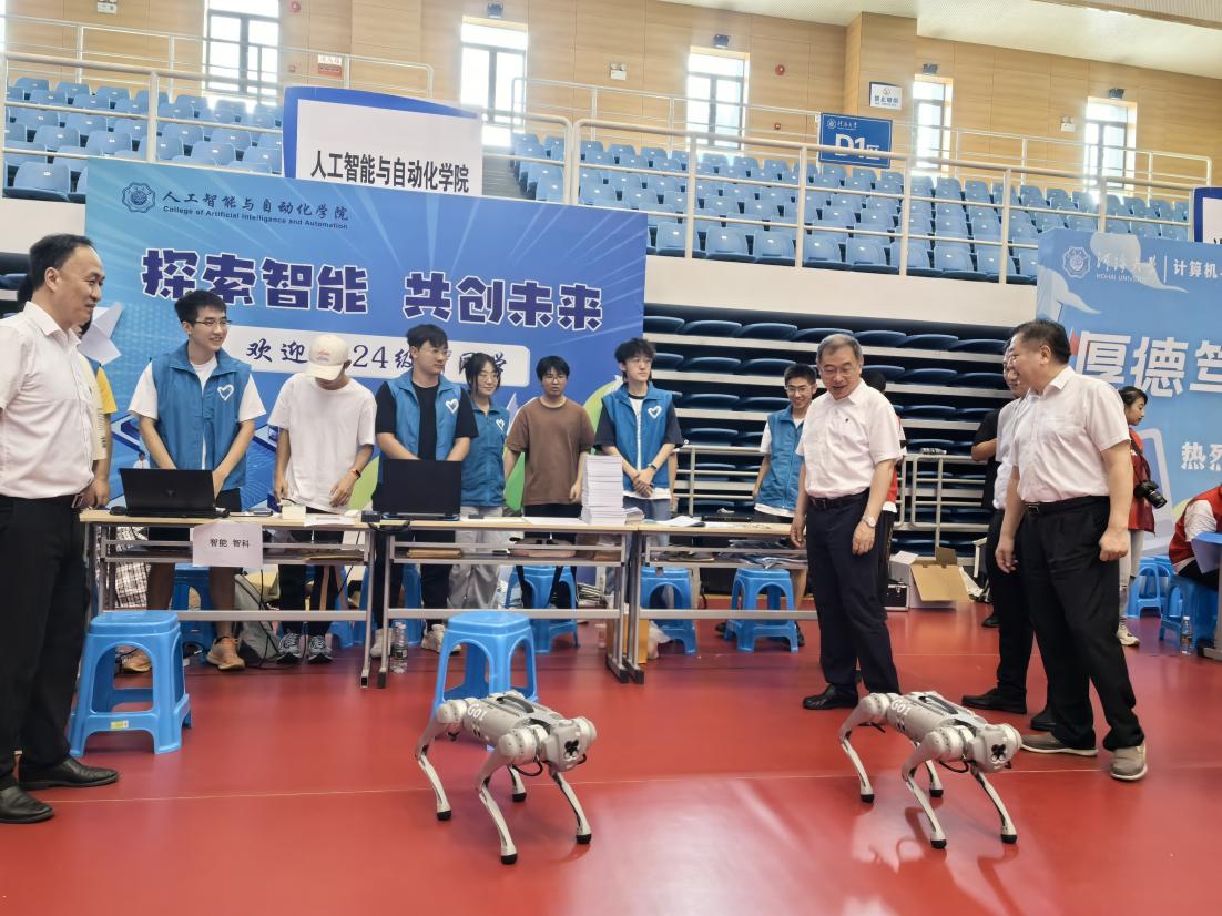 在学院的迎新现场,志愿者们训练有素,脸上洋溢着灿烂的笑容,认真细致地为新生办理报到手续。同时也将人工智能小课堂开到了迎新现场第一线,为同学和家长们讲解知识,手把手教学操作设备。他们用自己的实际行动,展现了新时代大学生的风采和担当。