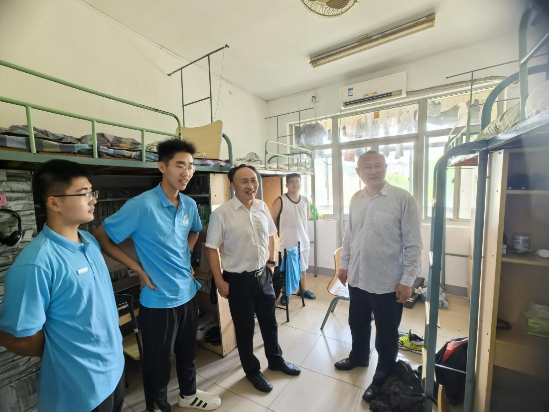 为了更直观的了解新生们的到校状态和生活情况,学院党委书记董涌波、院长刘小峰、党委副书记李晓东带队走访新生宿舍。与刚入住的同学们亲切交流,询问大家开学入住后是否顺利以及新学期的准备。同时,提醒同学们要保持宿舍整洁,注意用电安全、财产安全等,共同维护校园的和谐稳定。在交流中,领导们耐心倾听学生们的心声,对大家在学习和生活中遇到的问题,及时给与建议和鼓励。