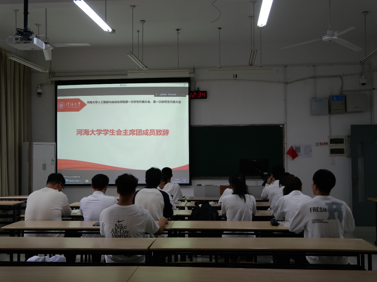 值此中华人民共和国成立七十五周年,河海大学一百零九年华诞之际,yl88858cc永利官网第一次学生代表大会、第一次研究生代表大会于2024年10月15日在常州校区21号楼101会议厅、江宁校区博学楼B204隆重召开。学院党委书记董涌波老师、校学生会主席团成员张玉麟同学、校研究生会主席团成员李嘉豪同学出席大会并发表重要讲话。学院党委副书记李晓东老师、学院团委书记贾婷婷老师以及全体学生代表参加此次大会。