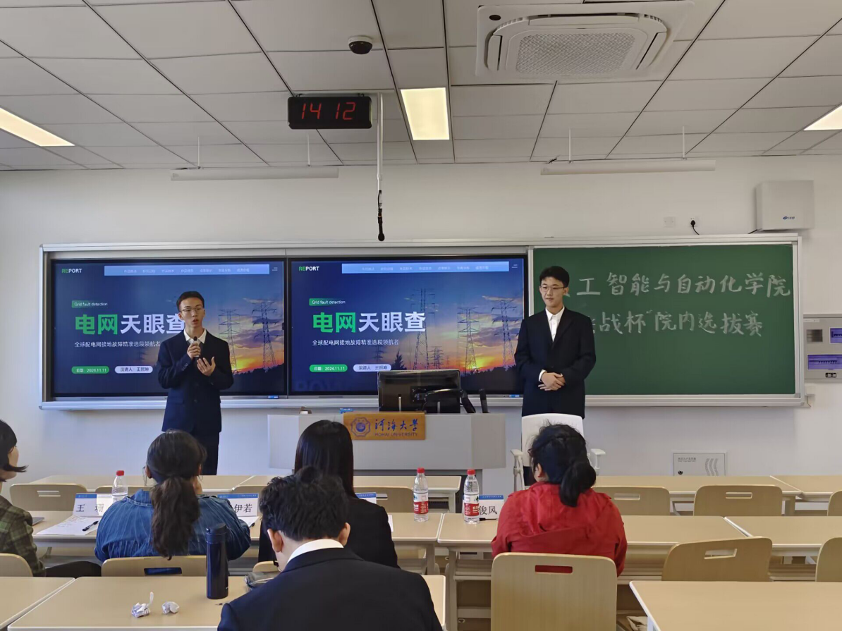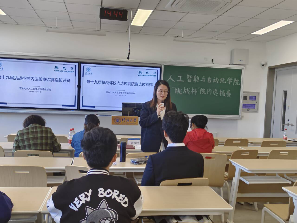 根据河海团发〔2024〕42号文件精神,2024年11月11日,学院在2号楼C214成功举办了第十九届“挑战杯”全国大学生课外学术科技作品竞赛院内选拔赛。此次活动由yl88858cc永利官网学生科协主办,yl88858cc永利官网团委书记贾婷婷老师、自动化系陈俊风老师、辅导员王珊老师及信息科学与工程学院吴伊若老师担任评委。