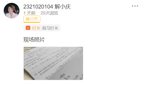 自习打卡:持之以恒的学习是养成良好学习习惯的重要途径。通过每天坚持不懈地自习,学生可以持续获取新知识,逐步提高学习能力。本次自习打卡鼓励同学们在日常学习中保持持续的努力,培养独立学习的好习惯。