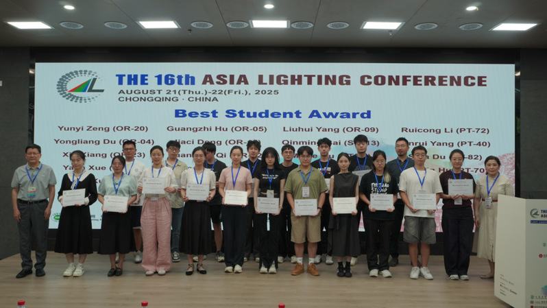 yl88858cc永利官网“人–机–环境融合智能”团队提交的论文《The Role of Panoramic Illuminance in Assessing the Illuminance Adequacy of Visual Elements》,在重庆举办的第十六届亚洲照明大会上荣获最佳学生论文奖(Best Student Paper Award)。该论文第一作者为2023级硕士生谷美泽,通讯作者为夏岭老师。