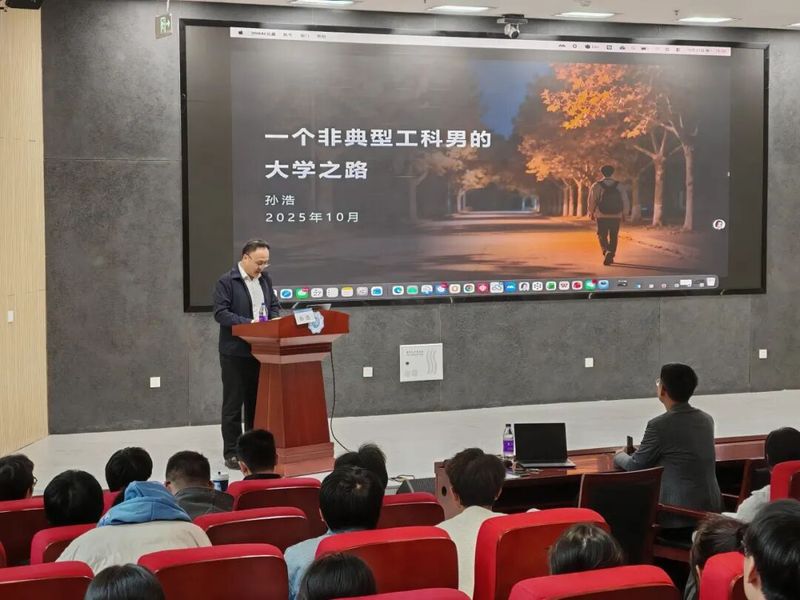 随后,孙浩校友以“一个非典型工科男的大学之路”为主题,用轻松真挚的语气、生动鲜活的故事,展开了一场干货满满的分享,打破了大众对工科男生“沉闷刻板”的固有印象。